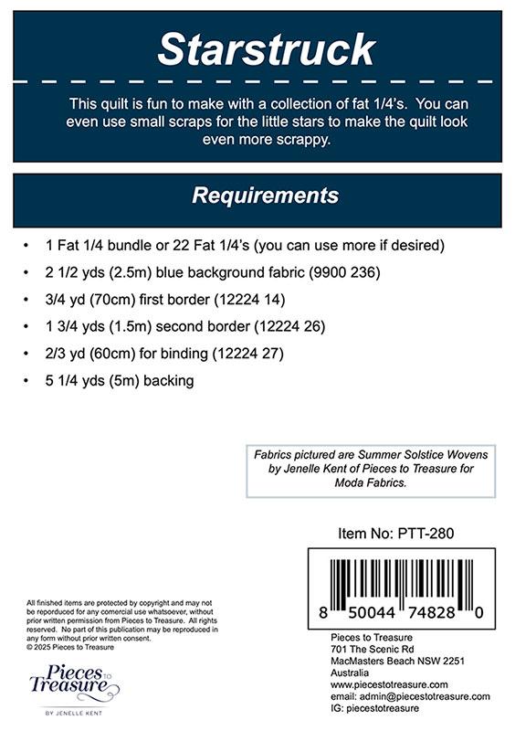 Starstruck Pattern G PTT 280 by Jenelle Kent for Pieces To Treasure