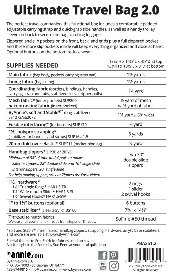 Ultimate Travel Bag 2.0 PBA 2512 Patterns by annie.com for Moda